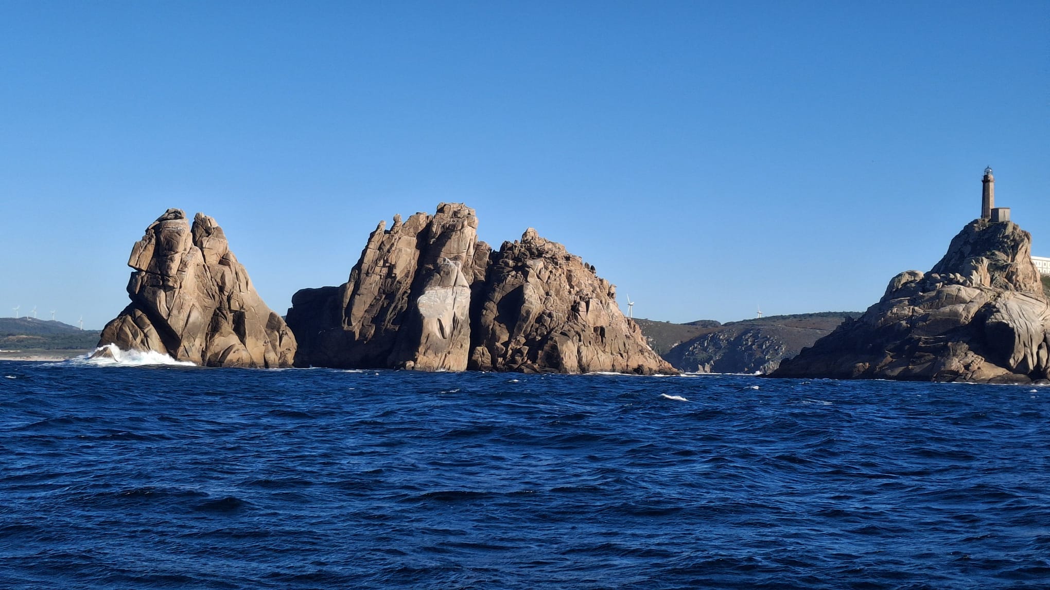 De eerste dag na vertrek uit A Coruña motorden we onder een strakblauwe hemel zonder wind min of meer langs de kust. We verbaasden ons dat talrijke boten mijlen ver van de kant voeren en zich dus niets van de orca-richtlijn aantrokken. ’s Middags om half twee klonk er via de marifoon “Securité, securité, securité” – de standaard-aankondiging van iets wat voor alle schepen van belang is. En jawel hoor, 5 mijl ten zuiden van kaap Fisterra waren twee schepen aangevallen door orca’s. Daar zouden wij de volgende dag in de buurt zijn, maar vandaag bereikten we zonder kleerscheuren de Ria de Camariñas en meerden af in het aardige plaatsje Camariñas zelf.