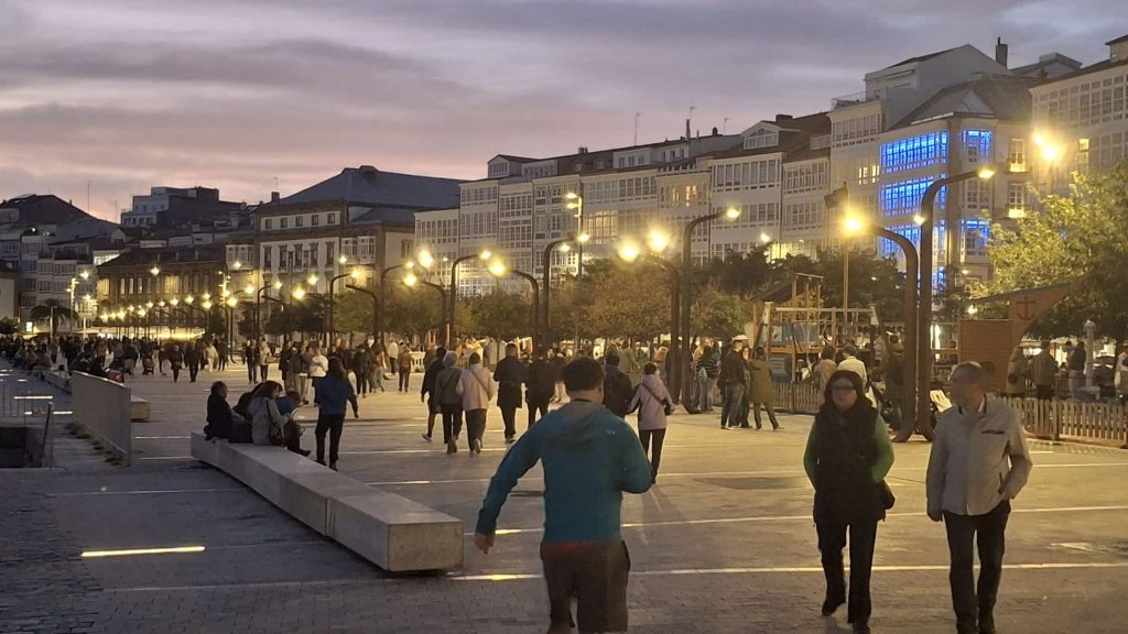 A Coruña is een gezellige stad met veel mensen op straat en op de terrasjes, met het mooie weer dat we hadden. De omgeving van de haven en de aangrenzende binnenstad is het flaneergebied bij uitstek. Hoe later op de avond, hoe meer volk, tot er in de binnenstad zelfs opstoppingen dreigen te ontstaan. Wel alles heel relaxed en in goede sfeer. Deze hernieuwde kennismaking was weer goed bevallen.