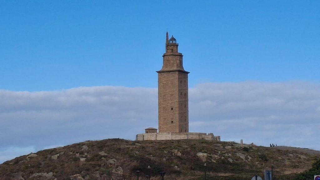 Dat wilden we meemaken. Wij vervoegden ons beleefd bij de receptie, waar ons vriendelijk maar beslist door receptioniste Lina werd duidelijk gemaakt dat we in onze kloffie echt niet pasten tussen de gentlemen daar, nog afgezien van het feit dat we geen bewijs hadden dat we in de haven lagen. Dat laatste was oplosbaar dankzij de eveneens vriendelijke marinero van dienst die daar toevallig aanwezig was. Maar die kleding, hoe jammer ze het voor ons ook vonden, dat kon echt niet. Maar er was een oplossing. Beneden was nog een zaal, niet zo chique als boven, maar daar mochten we dan in de middag wel komen eten. Nog ginnegappend dat ons zo vol verontschuldigingen de toegang tot de ‘higher circle’ was ontzegd gingen we de stad weer in om de “Toren van Hercules” te bezoeken. Dit is een vuurtoren, waarvan het binnenwerk nog uit de Romeinse tijd stamt – een indrukwekkend gebouw, fraai gerestaureerd in de 19e eeuw en voorzien van uitstekende historische toelichtingen.